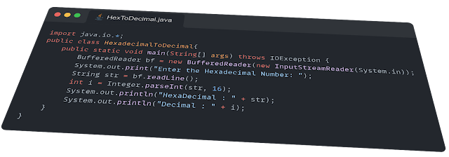 bf.readLine() reads the input from the console as a string and stores it in str.6. Convert Hexadecimal to Decimal: